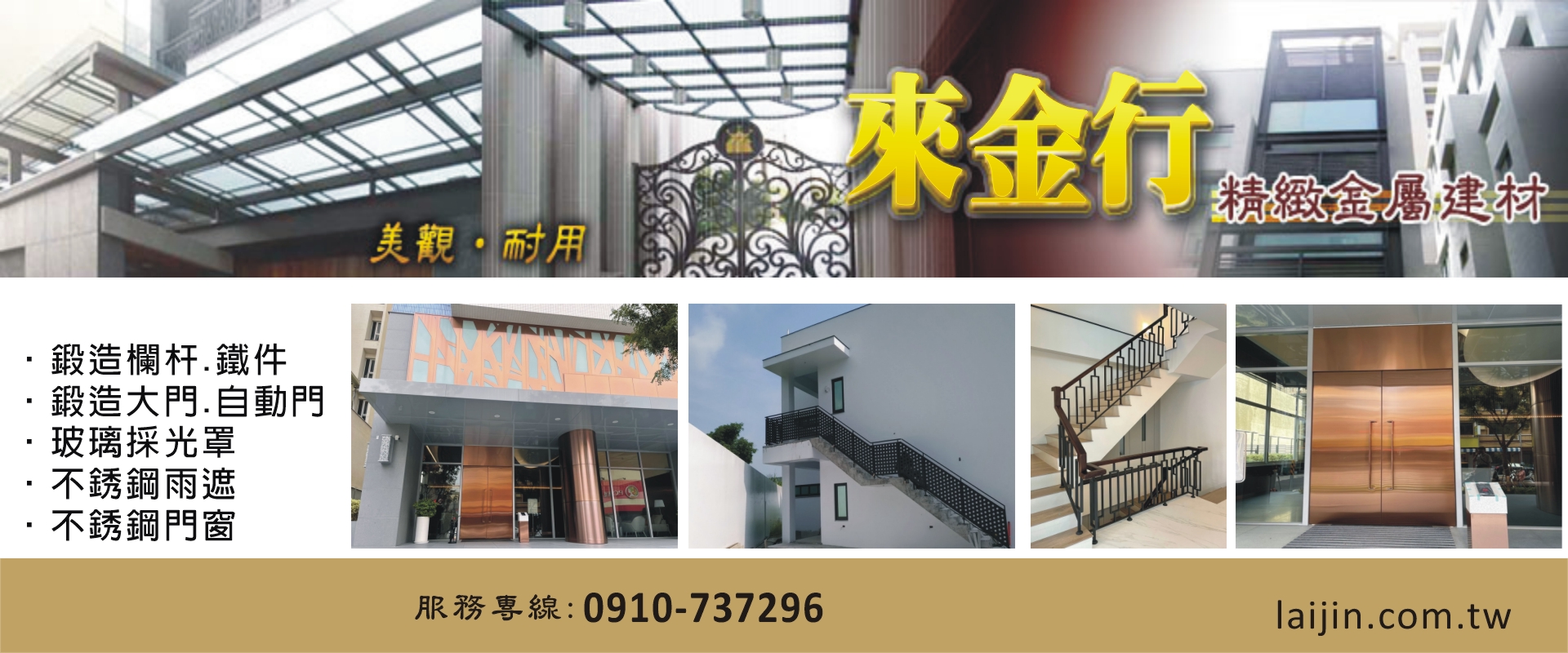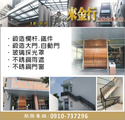 來金行 - 台南鍛造欄杆、台南鍛造鐵件、台南玻璃採光罩、台南不銹鋼門窗、台南鐵件工程